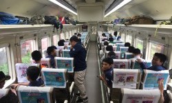 Gerbong kereta terdiri dari kelas ekonomi dan empat gerbong eksekutif