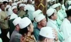 Jamaah yang hadir di haul tahunan dari pencipta kitab maulid Simtud Durar, Habib Ali bin Muhammad Al Habsyi.