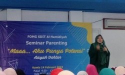 Seminar parenting di SDIT Al-Alhamidiyah ini menghadirkan Aisah Dahlan.
