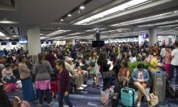 Para pemerotes menduduki ruang kedatangan bandara Hong Kong bulan lalu