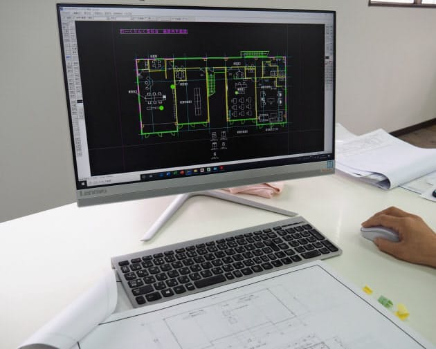 広い部屋で障害者がパソコンに向かい、CAD(コンピューターによる設計)を使って図面を作っている。作成するのはオフィスのレイアウトや配線図など。2017年に開業した障害者就労支援事業所「わーくりんく宝石台」(栃木県高根沢町)の一室だ。