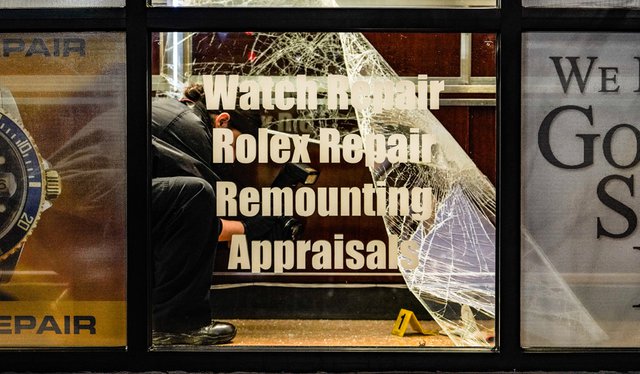 Because only one display at the very front of the store was targeted, authorities question whether the burglars knew what they were stealing, or if they were stealing the closest possible items after entering the store.