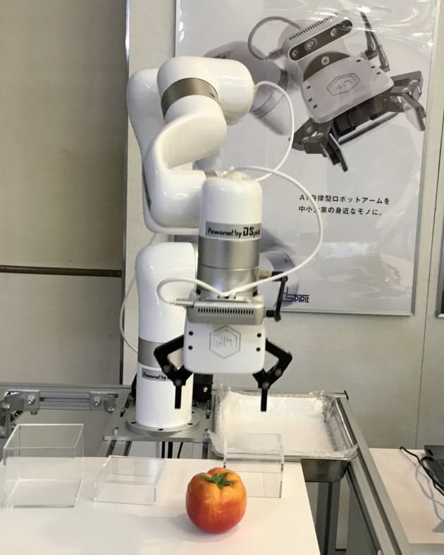ミカンやナシといった果実の収穫作業に活用できる人工知能(AI)搭載の自律型ロボットアームシステムが誕生した。カメラで対象物との距離や形などを認識し、収穫に適した果実を選びつかみ取る仕組みで、システム開発のディースピリット(松山市)が開発した。人手不足の農家を中心に月10万円程度で貸し出す。