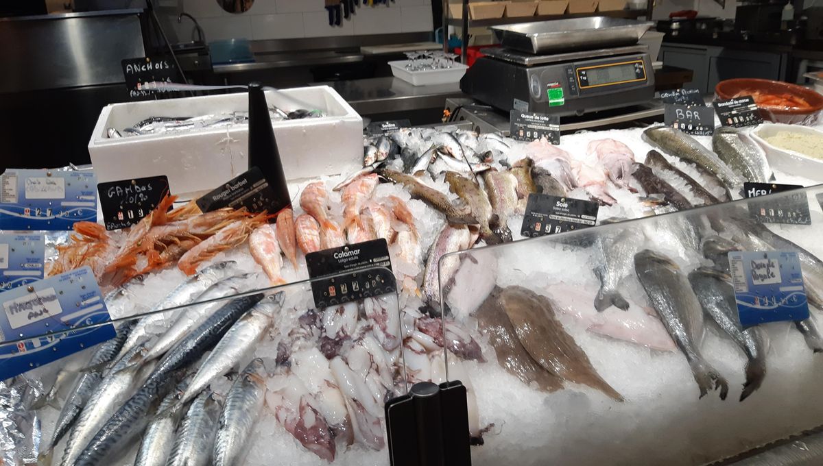 Nous faisons toute la gamme de poissons essentiellement les poissons de méditerranée, nous travaillons avec Laurent et Victor, nous sommes trois ici. La partie poissonnerie, la partie bar à huitre et dégustation sur place, nous avons également des plancha de poissons et nous livrons aussi le poisson ou les plateaux de fruits de mer à domicile.