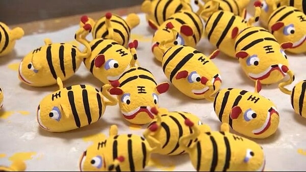 岩手県盛岡市の工房では、まゆを使った縁起物の干支の人形作りが最盛期を迎えている。