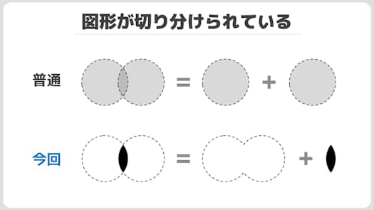 池照 うーん、それはもう少し考えてみようか。……ところでこのベン図、「図形の接合」で図形を切って作ってるね。そうしないと、円と円の重なりをこんなにきれいに塗れない。